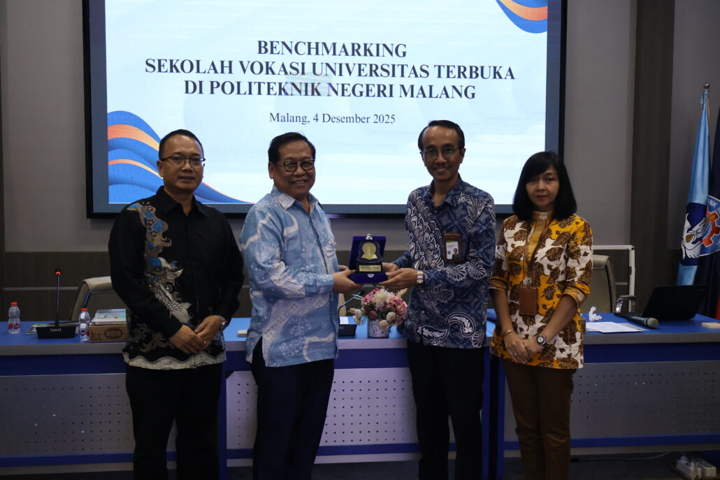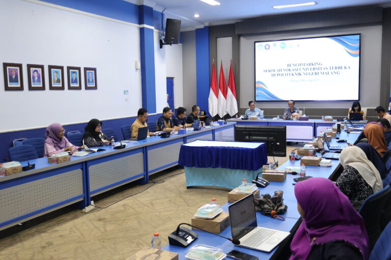 Malang, [4 Desember 2025] — Sekolah Vokasi Universitas Terbuka (UT) melaksanakan kegiatan benchmarking ke Politeknik Negeri Malang (POLINEMA) sebagai bagian dari upaya penguatan penyelenggaraan pendidikan vokasi yang selaras dengan kebutuhan dunia usaha, dunia industri, dan dunia kerja (DUDIKA). Kegiatan ini berlangsung di Kota Malang dan diikuti oleh jajaran pimpinan serta tim pengelola Sekolah Vokasi UT.